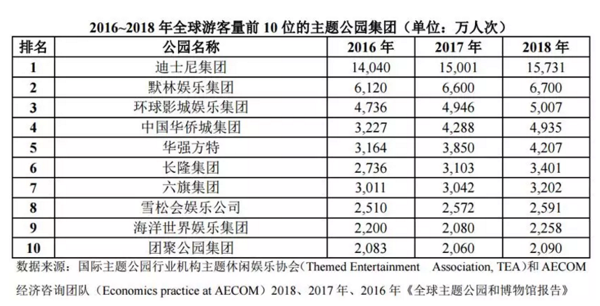 其次,2018年累計4200多萬的游客數量來自旗下20多個樂園,平均下來,每家樂園的年游客量在200萬人左右。而在旅游行業,300萬人的年游客量,是判斷一個主題公園能否盈利的一個重要平衡點。