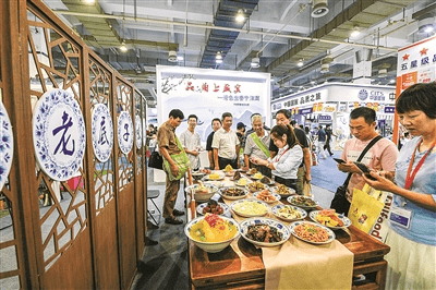 2019寧波國際旅游展上,寧波主題館的飲食文化專區吸引不少市民駐足拍照。(李冰 攝)