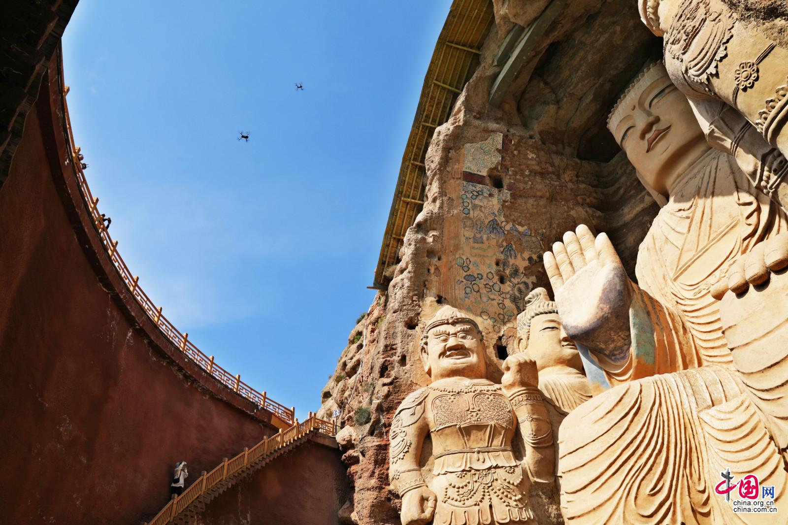 “石窟鼻祖”——武威天梯山景區(qū)石窟,旁邊就是黃羊水庫。中國網(wǎng)記者胡俊 攝