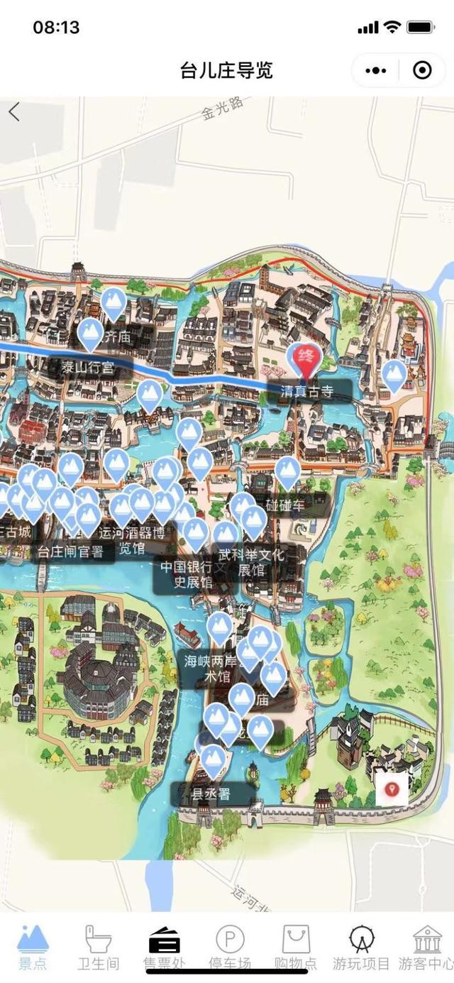 游客可使用古城智慧旅游平臺導覽系統、手繪實景地圖實時掌握全部古城景點位置,并可通過語音講解古城歷史背景;同時在導覽系統內還可以查找景區內衛生間、購物點、乘船碼頭等位置信息,大大提升游客游覽感知;還有實景導游功能,便于游客參考合理安排游覽路線。這一項目的實施讓景區運營更輕松、游客游覽更方便。