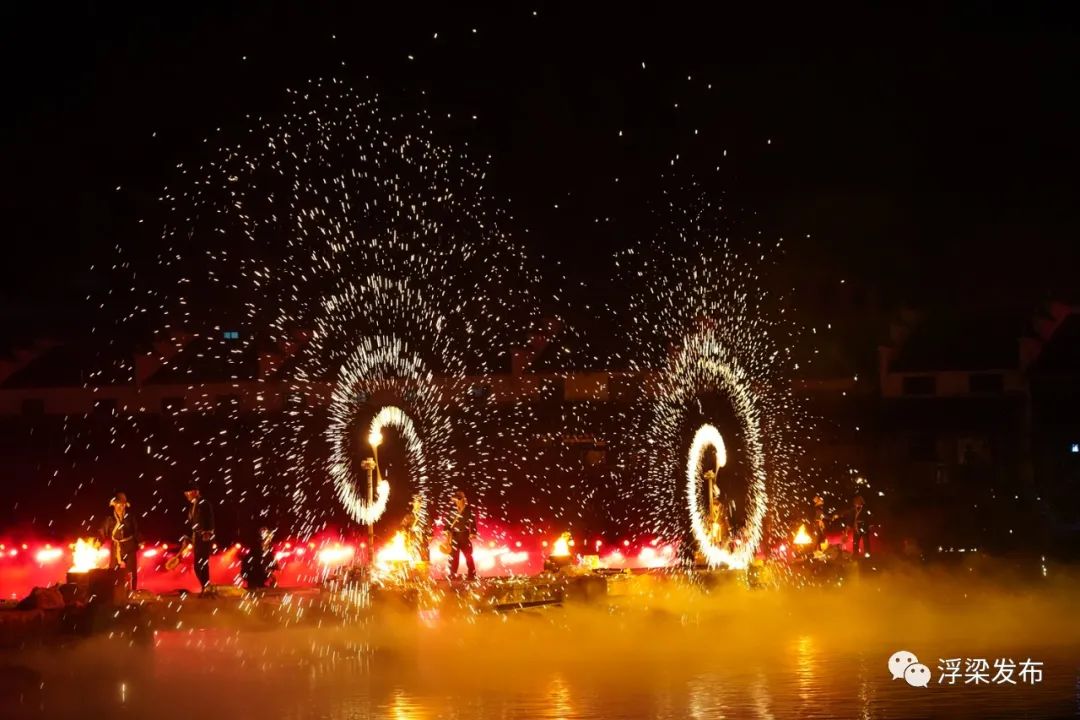 古村內(nèi),還有《絲路歌垚》《瓷土逆襲》《石巷故影》《鴻潭盛景》等四大篇章、34組為浮梁量身打造的水陸燈市布滿街道、橋面、古巷之內(nèi),彩燈高懸,燈光通明。水影互動(dòng)、聲光融合,點(diǎn)亮了沉睡多時(shí)的古街古碼頭,再現(xiàn)當(dāng)年東埠古村因?yàn)樘沾啥藤Z繁榮的盛景。