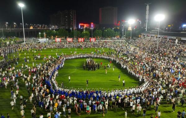 賽場上,各村代表隊的村民身著民族盛裝,肩挑糯米飯、腌魚、牛癟等特產與同村的足球運動員一起入場,展示了多姿多彩的民族文化。村民組成的“啦啦隊”更是讓極具特色的侗族大歌、苗族蘆笙舞、民族服飾等民族文化,在球場上得到盡情展示。開賽前后,村民與觀眾手拉手跳起民族風情舞蹈,刮起的最“炫”民族風,不斷撩動億萬網友心弦。