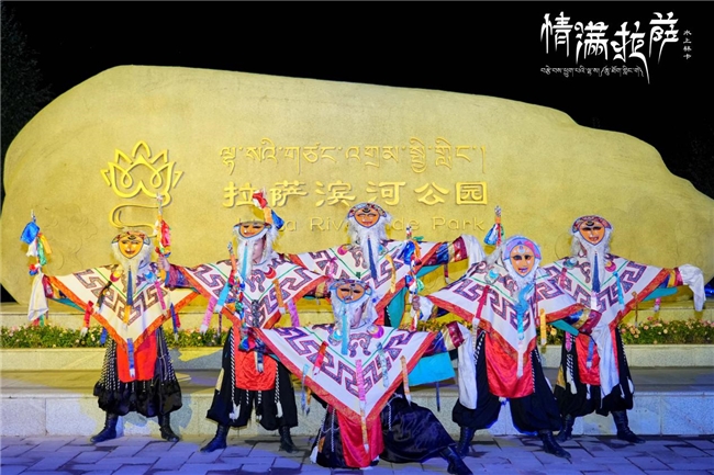 船體緩緩駛?cè)牒有模沁z藏戲演員高亢的唱腔劃破夜空。在現(xiàn)代化聲光電技術(shù)的烘托下,舒展的水袖與激光共舞,神秘面具與動態(tài)燈光交織,千年古城的前世今生在虛實之間璀璨新生。